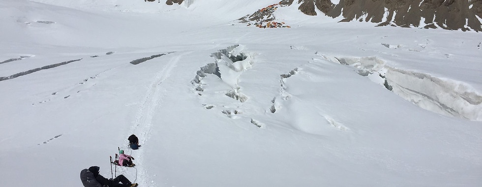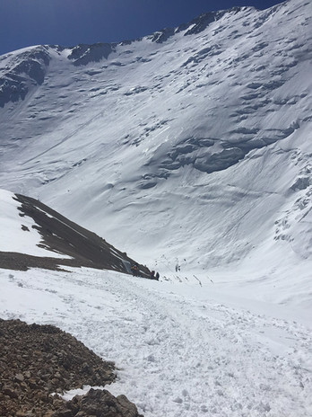 Завтра наступает момент истины - переход из первого лагеря во второй. Все, кто интересовался восхождением на п. Ленина, знают про эту тропу "смерти". На этом участке сразу видно отличие маршрута на п. Ленина от Аконкагуа и тем более Килиманджаро или Эльбруса. Здесь есть реальная возможность провалиться в трещину при подъёме по леднику. Да и сам подъем крутой и выматывающий.