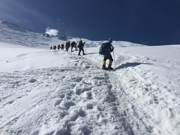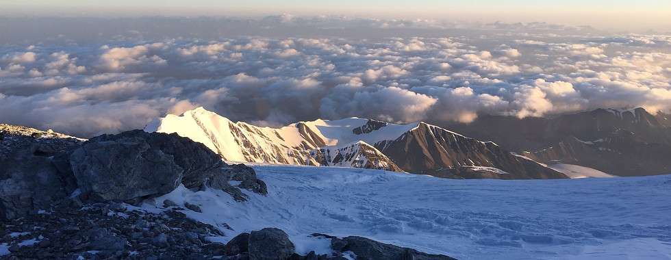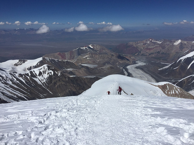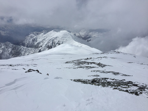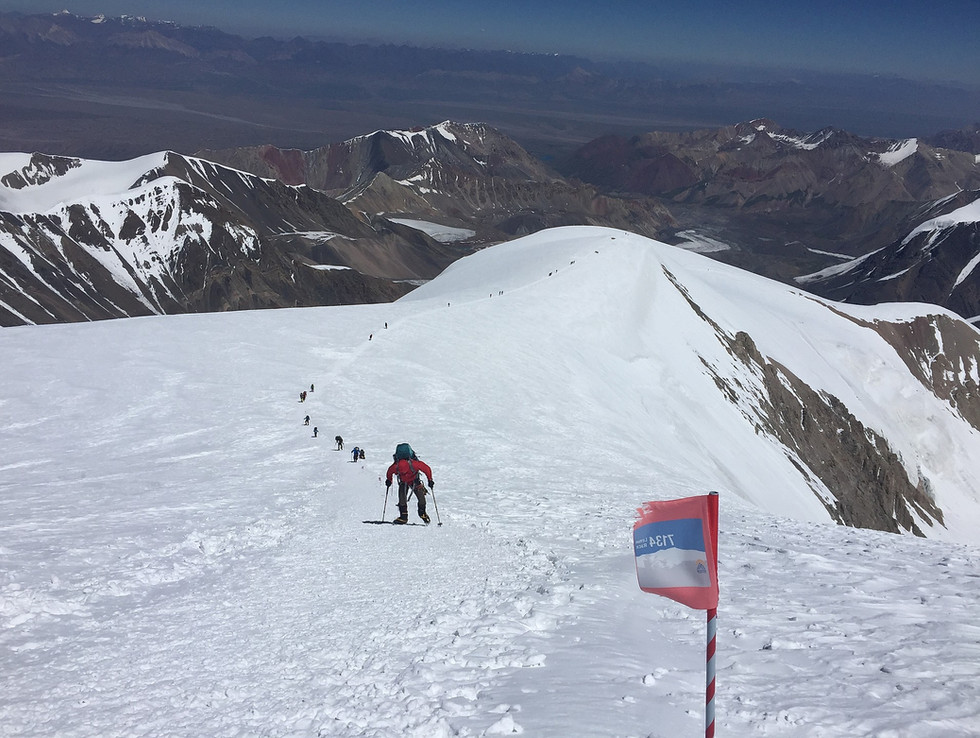 На высоте около 6000 м. даже просто передвигаться по относительно пологому хребту нелегкая задача, но подъем на этот последний взлет совершенно выматывающий.
