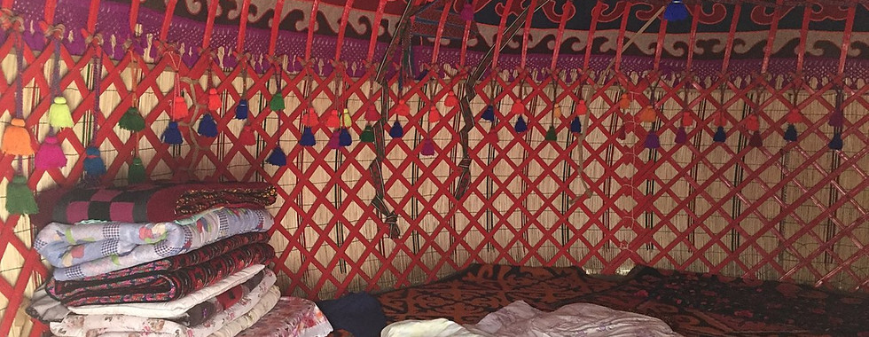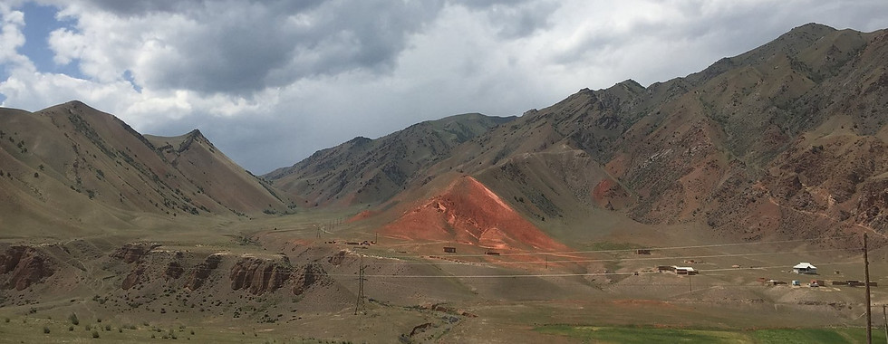 Степи переходят в живописные предгорья Алайских гор, напомнивших мне Анды с их красными свободными от растительности склонами. По дороге остановка на обед в гестхаузе, где предлагаются традиционные киргизские блюда.