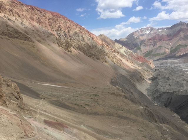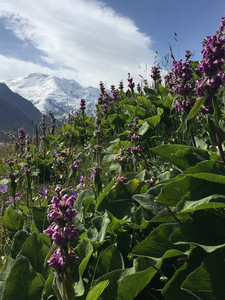 Утром отличная погода, светит солнышко. Не торопясь завтракаю, отправляю вещи вниз на лошадях. И возвращаюсь в базовый лагерь, чтобы соединиться с основной группой. По пути, так же как и вчера, попадаются караваны лошадей и ослов, чтобы разминуться с ними на узкой тропе приходится забираться вверх по склону. Вниз идти гораздо легче, да и торопиться особо не куда, т.ч. по дороге останавливаюсь, любуюсь окружающими вершинами, фотографирую.