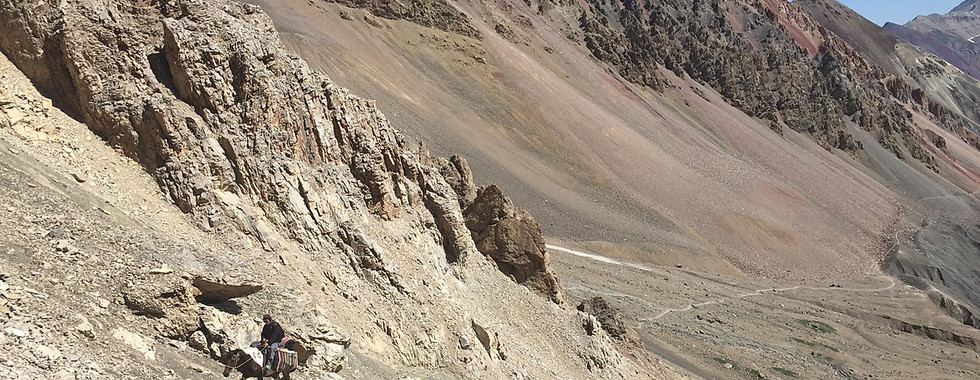 Ширина тропы максимум сантиметров 50, порой и 20, а на каменных движущихся осыпях ее практически нет, ослики и лошади идут просто по камням.