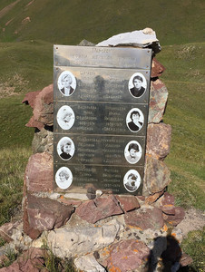 Сразу за лагерем небольшая речушка, перебравшись через нее подхожу к захоронению участников женской группы Эльвиры Шатаевой, погибших при восхождении на п. Ленина в августе 1974г. Я тогда только начинал заниматься альпинизмом и хорошо помню, как эта трагедия потрясла всех, кто хоть немного интересовался горами.